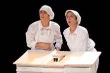 La storia di Hänsel e Gretel, pur nel rispetto del plot originario, diviene pre-testo capace di trasmettere suggestioni estetiche e simboliche forti, nel raffinato lavoro di sottrazione visuale e di integrazione con le musiche. La fiaba antica diventa narrazione attuale mentre affronta i temi dell’abbandono, della fame, della possibilità del riscatto attraverso la messa in comune di affetti e risorse. Lo spettacolo disegna con efficacia l’ambiente fisico e sentimentale in cui si muovono i personaggi, con elementi scenici essenziali ai quali contribuiscono fondamentalmente le ottime prestazioni degli attori, dotati di forti tratti espressionisti dai quali traspare l’attenta osservazione del patrimonio del cinema muto e del teatro magico ed essenzialista contemporaneo.