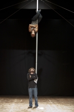 Un lavoro che mette in scena il piacere della lettura con gli strumenti di un teatro capace di coniugare l’elemento plastico e fisicamente performativo con il rigore dell’approccio al testo di Calvino, di cui contribuisce a evidenziare gli elementi formali attraverso strumenti e strategie propri della drammaturgia scenica.