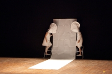 Oggetti che non cercano un autore, ma scrivono da sé la propria storia sulla scena, attraverso un esercizio-gioco basato sulla sorpresa, sulla fantasia, sulla fuga: oggetti che si sottraggono alla vista e alla loro comune attribuzione di senso, figure scappate da libri e cassetti, verso un nuovo percorso all’incrocio fra teatro di figura e arte concettuale.