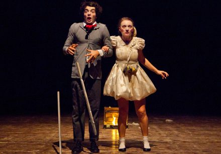 Utilizzando un interessante dispositivo drammaturgico, lo spettacolo si modula diversamente grazie all’interazione con gli spettatori e chiede ogni volta ai due interpreti di rendere unica e irripetibile la loro performance.