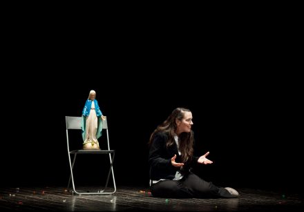 Angela Demattè dimostra maturità di scrittura scenica sostenuta dall’invenzione di un personaggio alla deriva e dalla ricerca di una lingua capace di raccontarlo. La frammentazione dell’interiorità di una donna si fa metafora della crisi dell’utopia europea: la scissione fra maternità, religione e ruolo sociale si rifrange nel mescolamento delle lingue dando vita all’ossimoro di una koiné babelica.