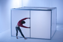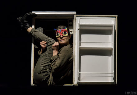 per le molte potenzialità di un’invenzione che cela la scena teatrale e la lascia al lavoro immaginativo dello spettatore. Un medium espressivo elastico e inviolabile che separa e assorbe l’azione rivelandone (anche metaforicamente) l’ossatura, per raccontare di una lotta per l’esistenza che coniuga il corporeo e l’incorporeo e svela la scena come luogo ancestrale del conflitto fra percezione e illusione, in un crescendo di tensione sapientemente orchestrato su una campionatura di suoni quotidiani dalle risonanze primordiali.