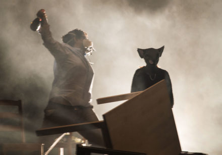 La coesistenza di diversi linguaggi teatrali, compresa l’artigianalità dei servi di scena, ci permette di apprezzare la verità del teatro che interagisce e agisce con la verità dei fatti.