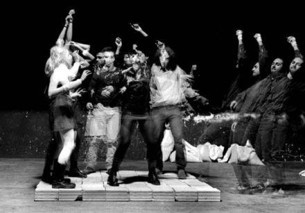 La compagnia, con un compatto lavoro di gruppo, costruisce intorno a questa dinamica interiore un calibratissimo ritmo di racconto, di dialogo e di azione scenica, delineando in alcuni momenti dei credibili microdrammi, ma definendo, poi, più esplicite astrazioni di movimento con una notevole efficacia di segno.