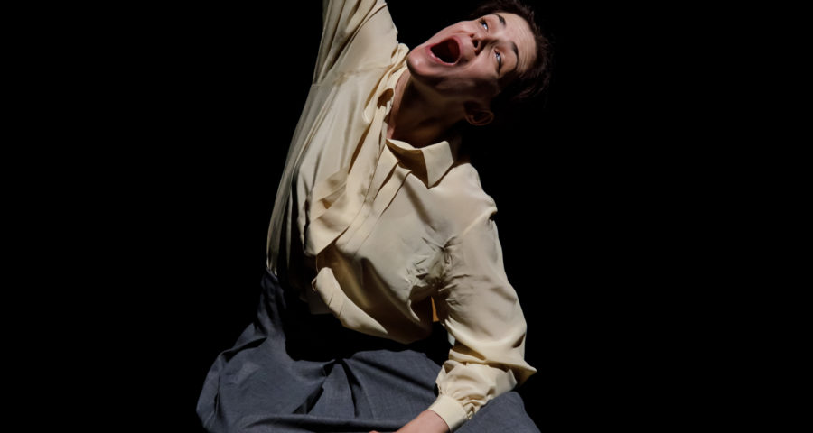 Cuce i frammenti di sé, li partorisce nell’aria che la circonda attraverso parole e danze che si defilano a passi levati dalla logica e da un senso lineare del tempo, si appoggiano all’andamento del Big Bang, della sospensione del respiro, dello zigzagare di una stella all’interno di una costellazione, dei mulini a vento.