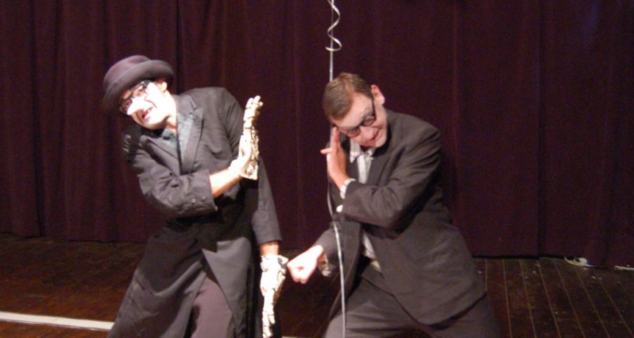 Un sogno, un incubo o forse un gioco. In un essenziale quadrato bianco, metafora di una stanza ideale, si danno battaglia due personaggi: un uomo in pigiama con palloncino bianco e la sua ombra travestita da morte. Il duello è ambientato tra l’interno della stanza del protagonista e un fuori carico di pericoli e paure. Gli inseguimenti e gli scontri sono caratterizzati dall’uso del corpo attraverso un linguaggio a volte poetico a volte clownesco, con numerose gag esilaranti al ritmo di una costante colonna sonora suonata dal vivo. Le azioni dei due attori sono accompagnate da un musicista che, con una chitarra e suoni artigianali, scolpisce non solo il ritmo ma anche lo spazio della scena. L’ispirazione guida di questo lavoro sono i film muti, le comiche, il mondo poetico dei clown. Un percorso che ha dato vita a una sorta di cartone animato in bianco e nero con attori in carne e ossa. Le dinamiche tra i due personaggi rimandano alle paure umane e, soprattutto, alla possibilità di guardarle con uno sguardo leggero e ironico. Solo così quelle stesse paure possono trasformarsi in coraggio e voglia di crescere